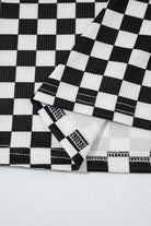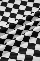 Black Checkered Ribbed Slim Fit Crew Neck T Shirt