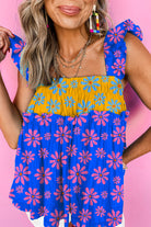 Blue Floral Colorblock Flutter Straps Flowy Tank Top