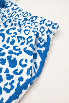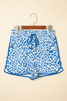 Blue Leopard Elastic Waist Lace up Contrast Trim Casual Shorts