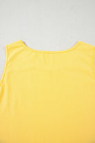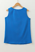 The sleeveless design and crew neckline offer a comfortable and breezy fit.