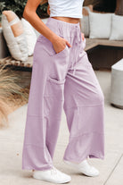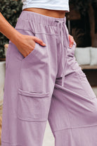 Bonbon Mineral Wash Exposed Seam Drawstring High Waist Wide Leg Cargo Pants