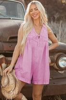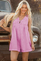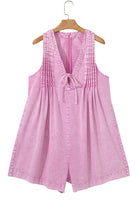 Bonbon Mineral Wash Pleated Bust V Neck Sleeveless Denim Romper