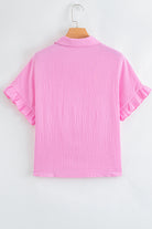 Bonbon Mineral Wash Textured Ruffle Trim Short Sleeve Shirt
