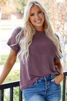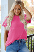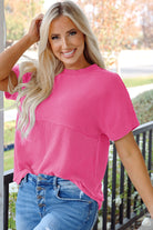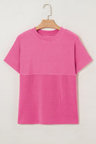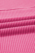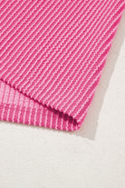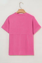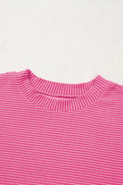 Bright Pink Plain Corded Knit Mock Neck T Shirt