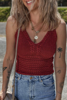 Burgundy Cable Knit Pointelle Slim Fit V Neck Sweater Vest