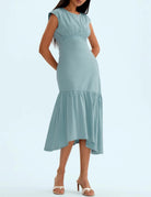 • FASHION DESIGN: This sleeveless a line dresses for women elegantly accentuates your figure. The pleated details on the bodice and asymmetrical hem add depth and style. The flowing hemline creates a graceful and airy look as you move, enhancing your feminine charm.