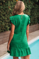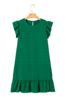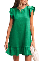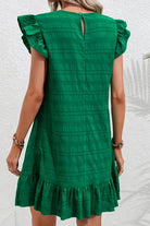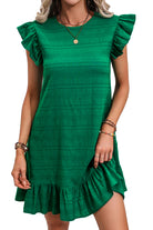 Dark Green Textured Flutter Sleeve Ruffled Mini Dress