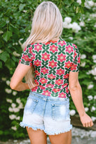 Fiery Red Retro Floral Print Crew Neck T Shirt