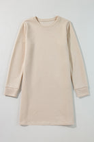 Gray Solid Color Textured Long Sleeve Shift Dress