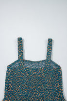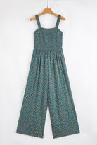 Green Floral Print Smocked High Waist Square Neck Jumpsuit