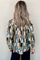 Green Geometric Print Buttoned Balloon Sleeve Loose Fit Shirt