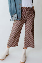 Khaki Checkered Elastic High Waist Loose Casual Pants