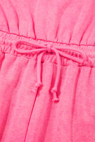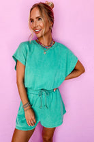 Mist Blue Mineral Wash Drawstring Waist Hollow Out Back Short Sleeve Romper