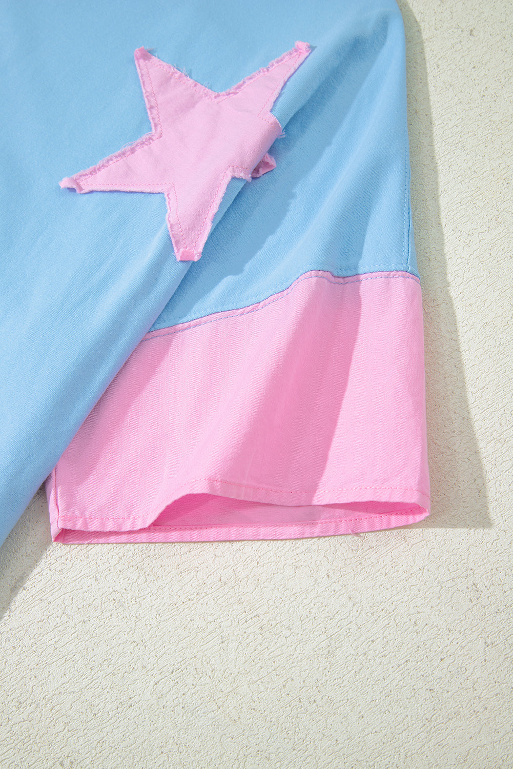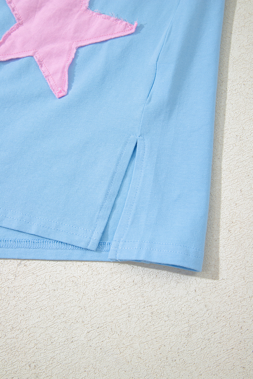 Myosotis Frayed Denim Star Patched Oversize T Shirt