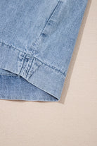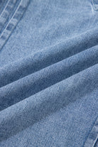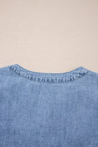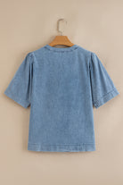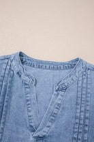 Myosotis Pintuck Pleats Puff Sleeve Split V Neck Summer Denim Top
