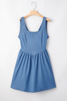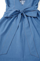 Myosotis Square Neck Pleated Waist V Cut Backless Tied Fit and Flare Dress