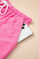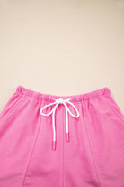 Myosotis V Neck Drop Shoulder Tee and Patchwork Drawstring Shorts Set