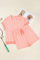 This outfit includes both the polo t-shirt and shorts, providing a complete and coordinated look effortlessly.
