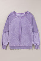 Orchid Petal Solid Waffle Knit Patchwork Raglan Sleeve Sweatshirt