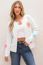 Pink Cute Knitted Floral Pattern Button Up Cardigan