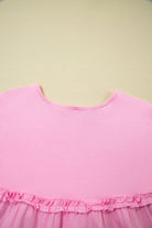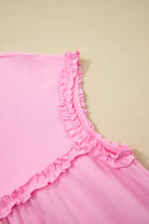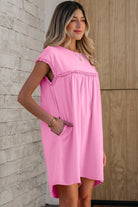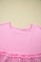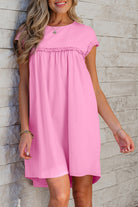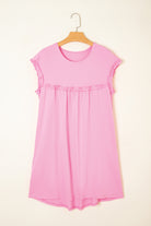 Pink Frilled Trim Crew Neck Loose Fit Mini Dress