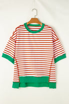 Pink Stripe Oversized Contrast Trim Exposed Seam High Low T Shirt