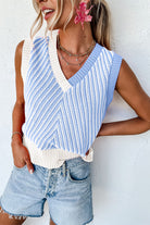 Sky Blue Contrast Chevron Knit V Neck Sweater Vest