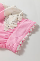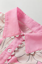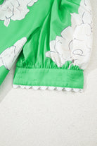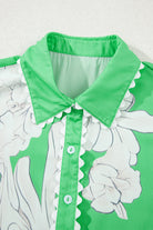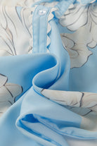 Sky Blue Floral Ric Rac Edge Puff Sleeve Button Up Summer Shirt