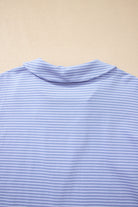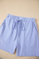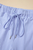 Sky Blue Stripe Dolman Sleeve Polo Shirt and Drawstring Shorts Set