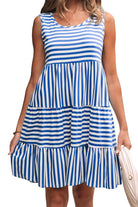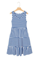 Sky Blue Stripe U Neck Sleeveless Loose Fit Mini Dress
