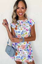 Sky Blue Vibrant Floral Print Cap Sleeve Mini Dress