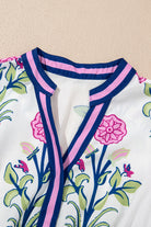White Floral Puff Short Sleeve V Neck High Waist Maxi Dress