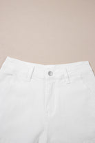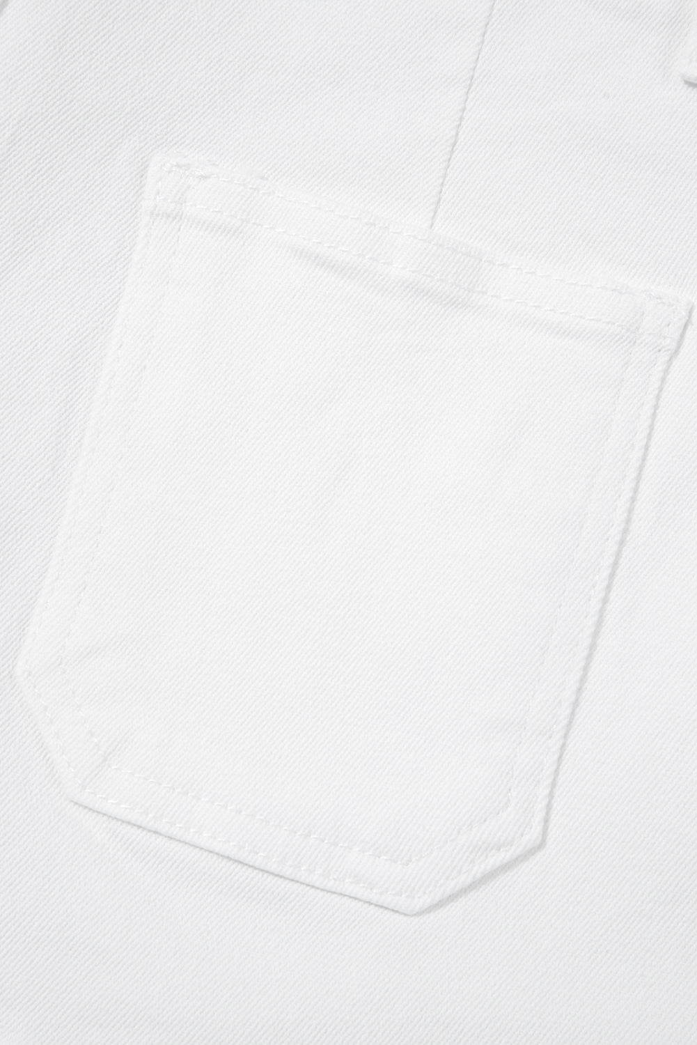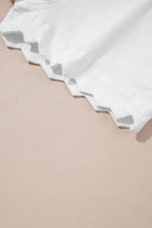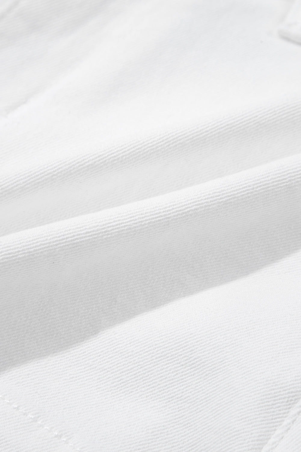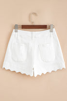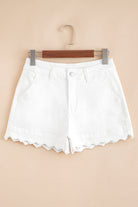 White Scalloped Hemline Acid Wash High Waist Denim Shorts