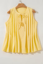 Yellow Cream Bow Tie Notched Neck Pleated Tank Top