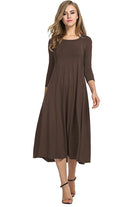 3/4 Sleeve Spring Crew neck Other Other Solid Polyester A-Line Dress Easy Care Knee Length Women