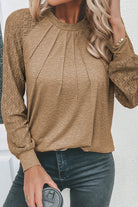 Light French Beige Contrast Lace Raglan Sleeve Plicate Round Neck Top