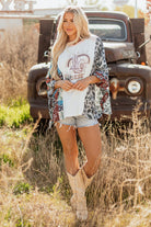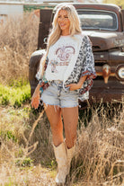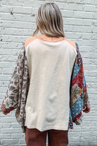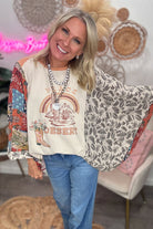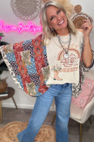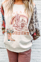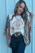 Multicolour Asymmetric Printed Patchwork Sleeve Peace Desert Graphic Top