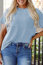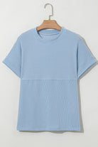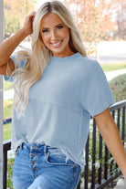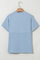 Myosotis Plain Corded Knit Mock Neck T Shirt