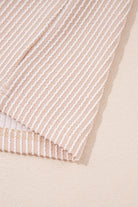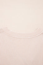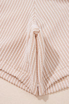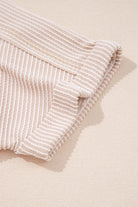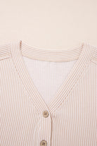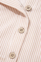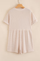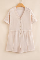 Parchment Spiral Ribbed Short Sleeve V Neck Buttoned Romper with Pocket