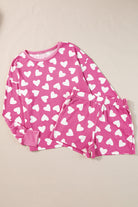Pink Valentine Heart Shape Print Long Sleeve Top Shorts Lounge Set