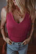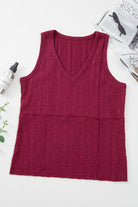 Red Dahlia Ribbed Textured Exposed Stitching Knit Tank Top