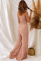 Black Thin Straps Smocked Bodice Wide Leg Floral Jumpsuit
