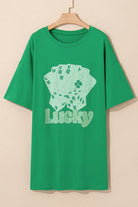 Bright Green Rhinestone Lucky Poker Cards Oversized T Shirt Mini Dress