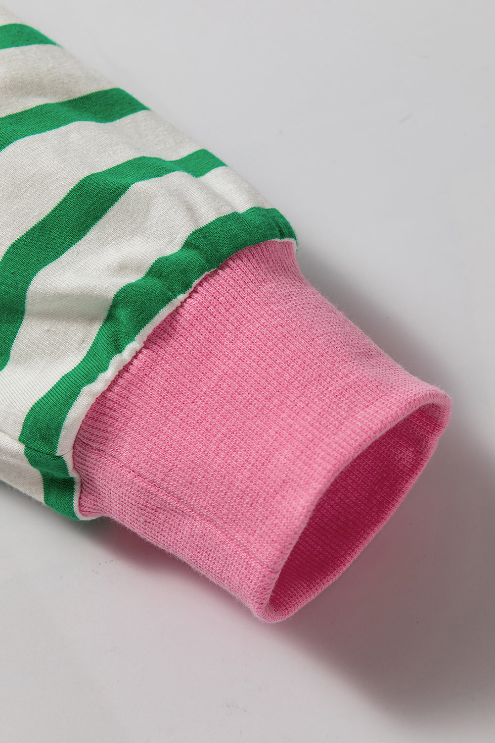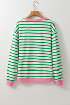 Bright Green Striped Contrast Edge Long Sleeve Top
