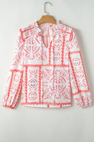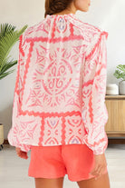 Desert Flower Vintage Print Smocked Poet Collar Billowy Blouson Sleeves Blouse