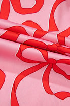 Pink 2pcs Bow Print Shirt Style Long Sleeve Pajama Set