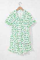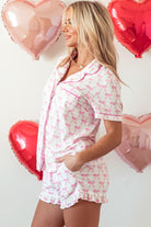 Pink Bowknot Printed Short Sleeve and Ruffled Shorts Pajama Set