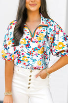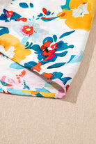 Pink Floral Print Slit V Neck Short Sleeve Blouse