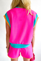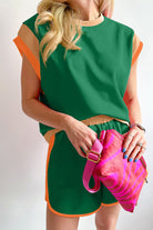 Rose Red Contrast Trim Cap Sleeve Tee Shorts Set