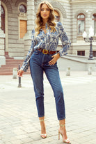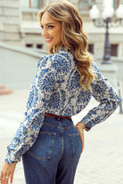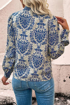 Sky Blue Bohemian Printed Bishop Sleeve Lace Shirt